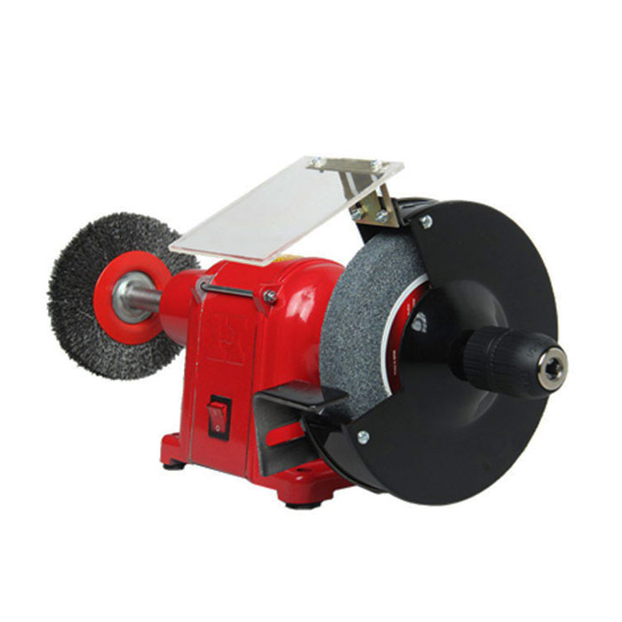 • این دستگاه دارای سنگ سنباده 175 میلی‌متری و مجهز به سه نظام در همان طرف و در طرف دیگر دارای شفت بلند جهت پرداخت کاری و فرچه کاری است. ضمنا یک عدد فرچه نیز بر روی دستگاه نصب شده است.